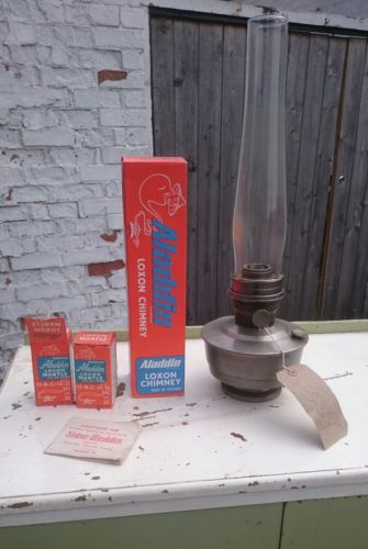 Title (ebay affiliate link): VINTAGE ALADDIN INDUSTRIES PARAFFIN / OIL LAMP with spares and instructions