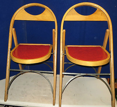 2 Vintage RETRO WOODEN BENT WOOD FOLDING CHAIRS wedding church red Naugahyde