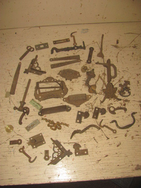 LOT OF ANTIQUE FURNITURE HARDWARE DRAW PULLS LATCHES HOOK BRACKET DRESSER DOOR