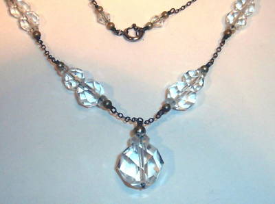 ANTIQUE c1910 CUT CRYSTAL NECKLACE LAVALIER