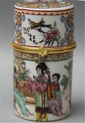 Chinese Porcelain Palace Belle play music Round Toothpick jewel coccoloba box#66