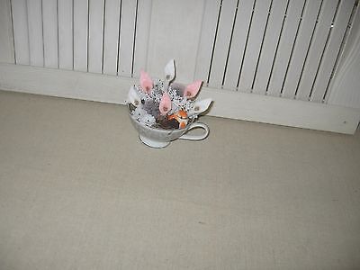 Title (ebay affiliate link): Handmade Fabric Bowl Filler shelf sitter, tea cup w/handmade flowers & Bird