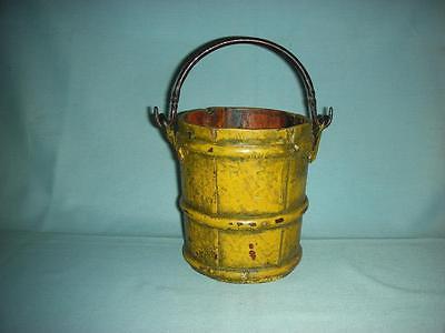 Old Yellow painted wood Berry Bucket with Metal Iron Handle