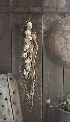 Title (ebay affiliate link): Primitive Early Homestead Look Dried Garlic & Parsnip Garland w/Aged Raffia