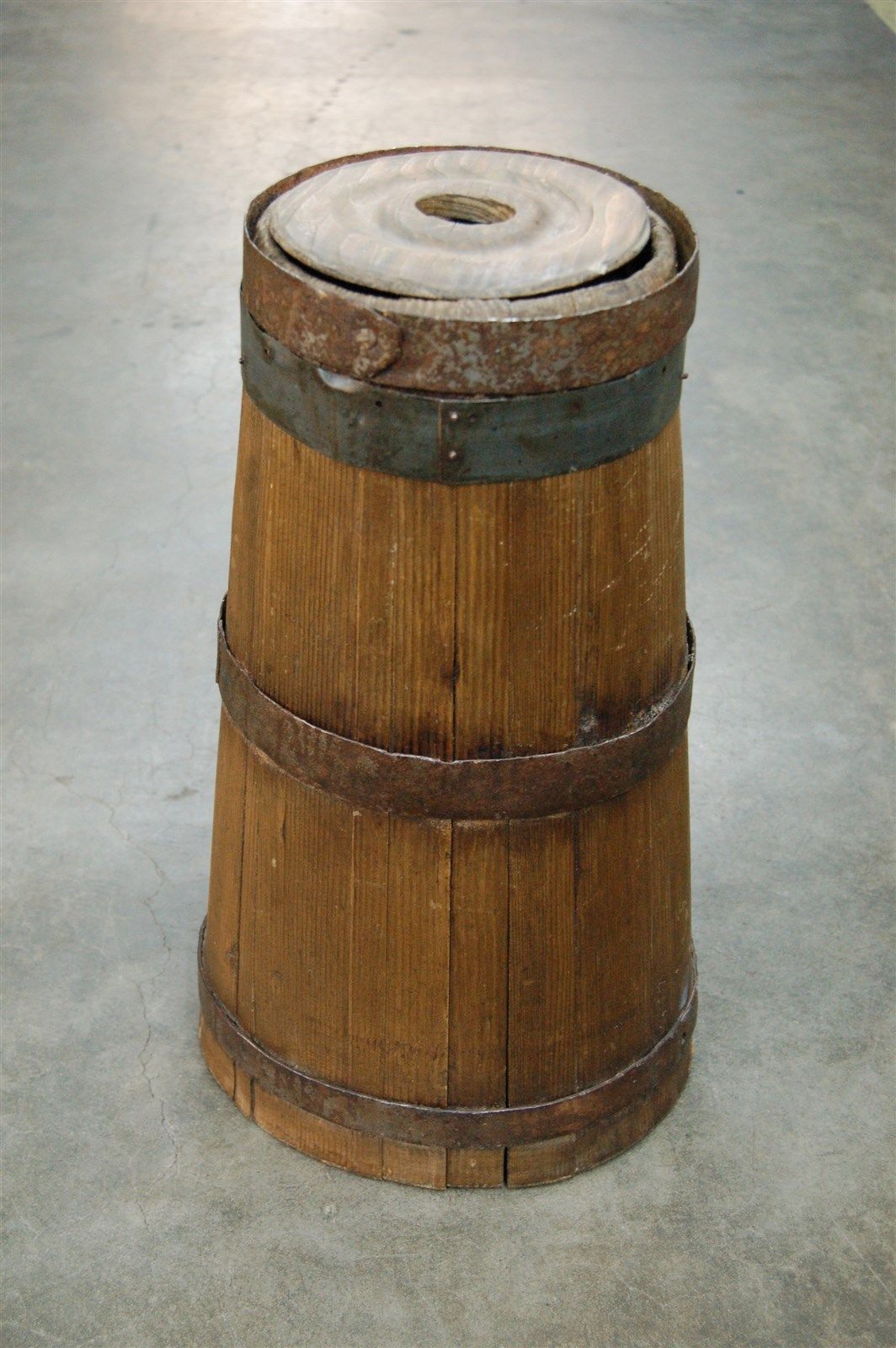 Antique Primitive Wooden Big Mortar 18" w/ Wrought Iron Rings