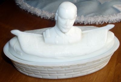 Admiral Dewey Covered Dish Opaque Milk Glass Rare