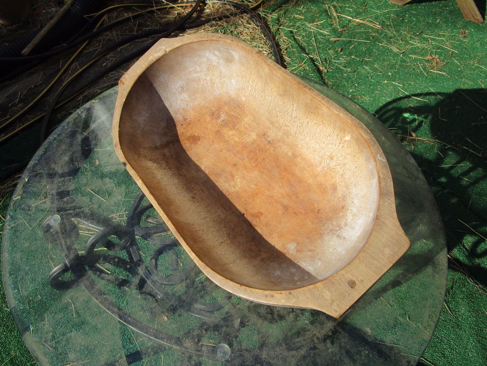 Antique Primitive Wooden Wood Dough Bread Bowl Trencher With Handles