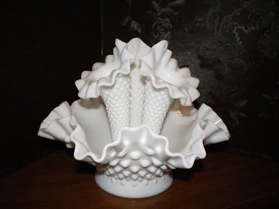 Fenton Epergne Hobnail Milkglass Vases-EX Cond.