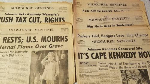Title (ebay affiliate link): Lot of 5 Milwaukee Sentinal papers Kennedy Assassination dates 11/26-12/3 1963