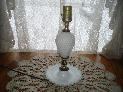 Vintage Hobnail Milk Glass Bedroom Lamp Works!!!