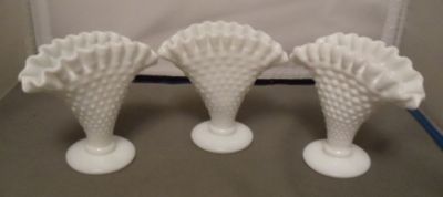 Fenton (3) Hobnail White Milk Glass Fan Vases