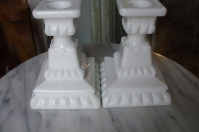 2 VINTAGE WESTMORELAND MILK GLASS CANDLESTICKS, SIGNED