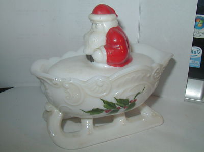 VINTAGE WESTMORELAND MILK GLASS SANTA COVERED DISH