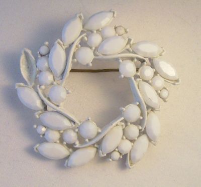 Vtg White Milk Glass Rhinestone Enamel Pin Brooch