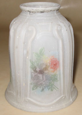VINTAGE SEMI-OPAQUE MILK GLASS LAMP SHADE ROSES UNIQUE