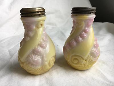 Title (ebay affiliate link): Vintage yellow and pink milk glass salt and pepper shakers