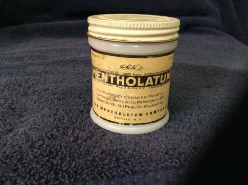 Vintage Mentholatum Milk Glass Jar With Lid, Half Full.