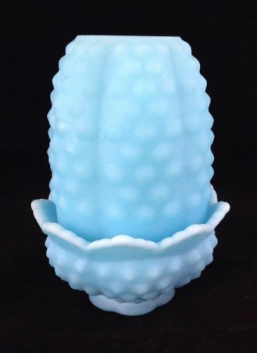 Vintage Fenton Hobnail Blue Satin Milk Glass Fairy Lamp