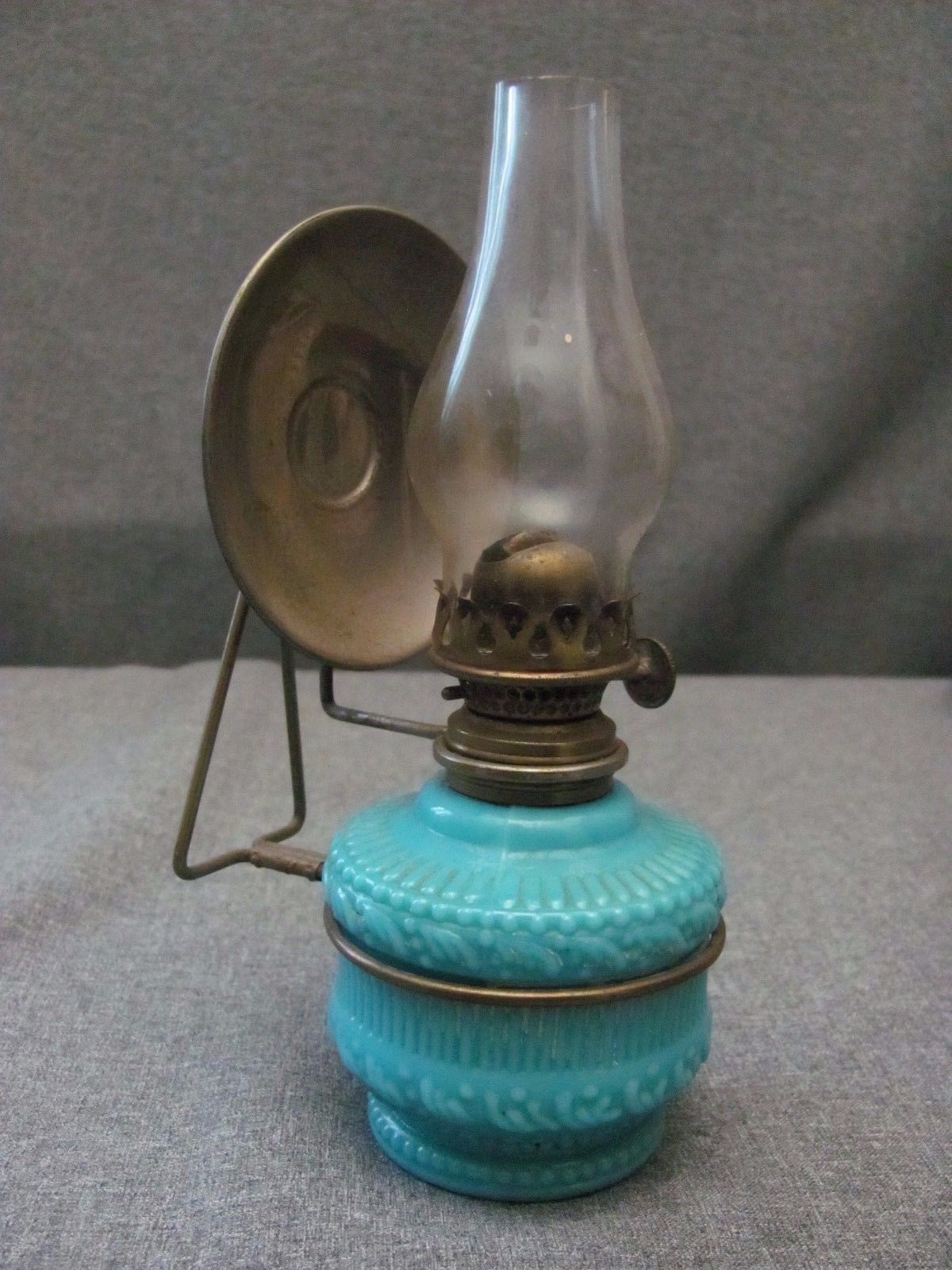 Miniature Blue Milk Glass Oil Lamp Katy Did