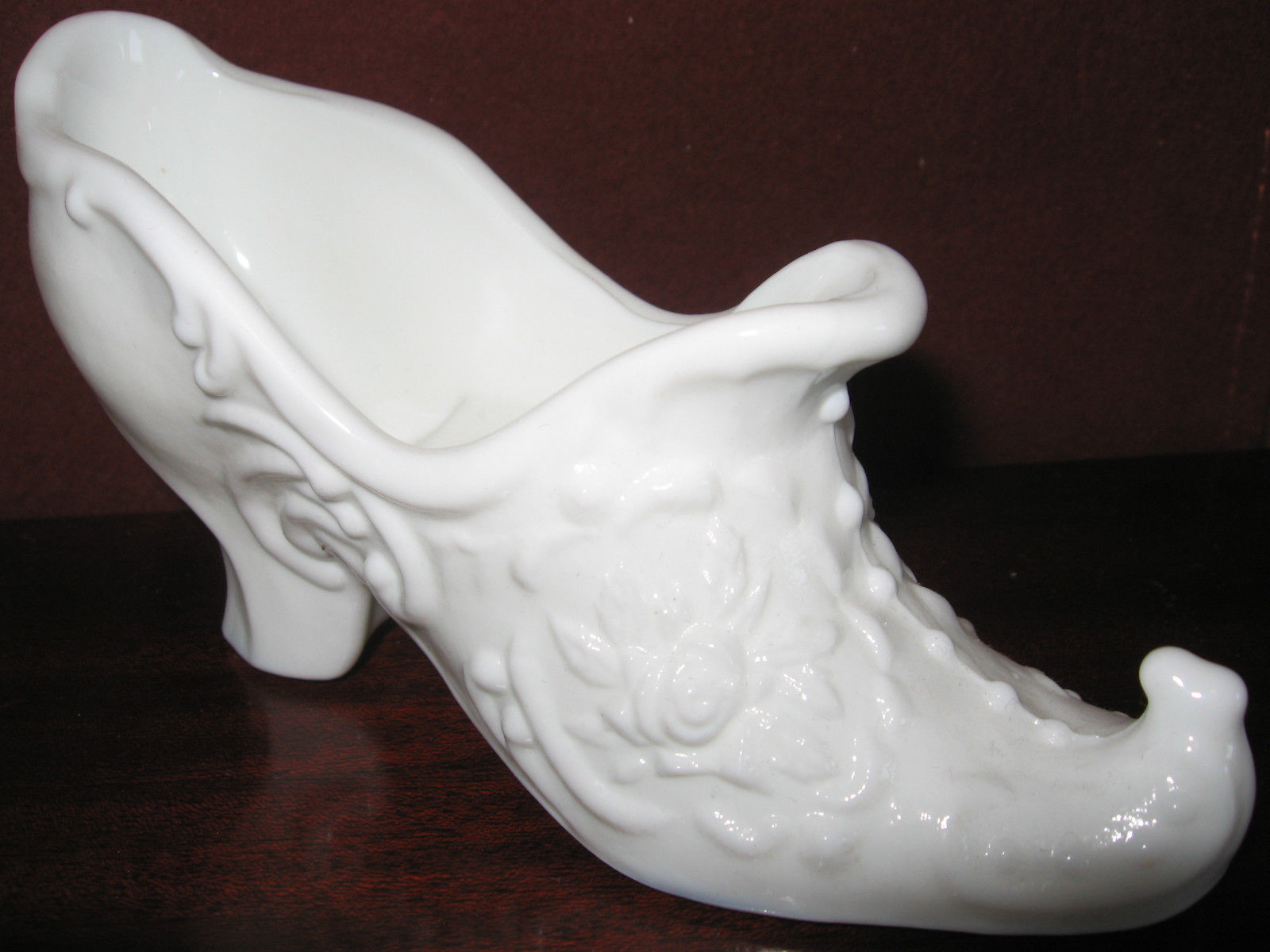 White Milk glass rose leaf Shoe Slipper Boot flowers floral opaque bud high heel