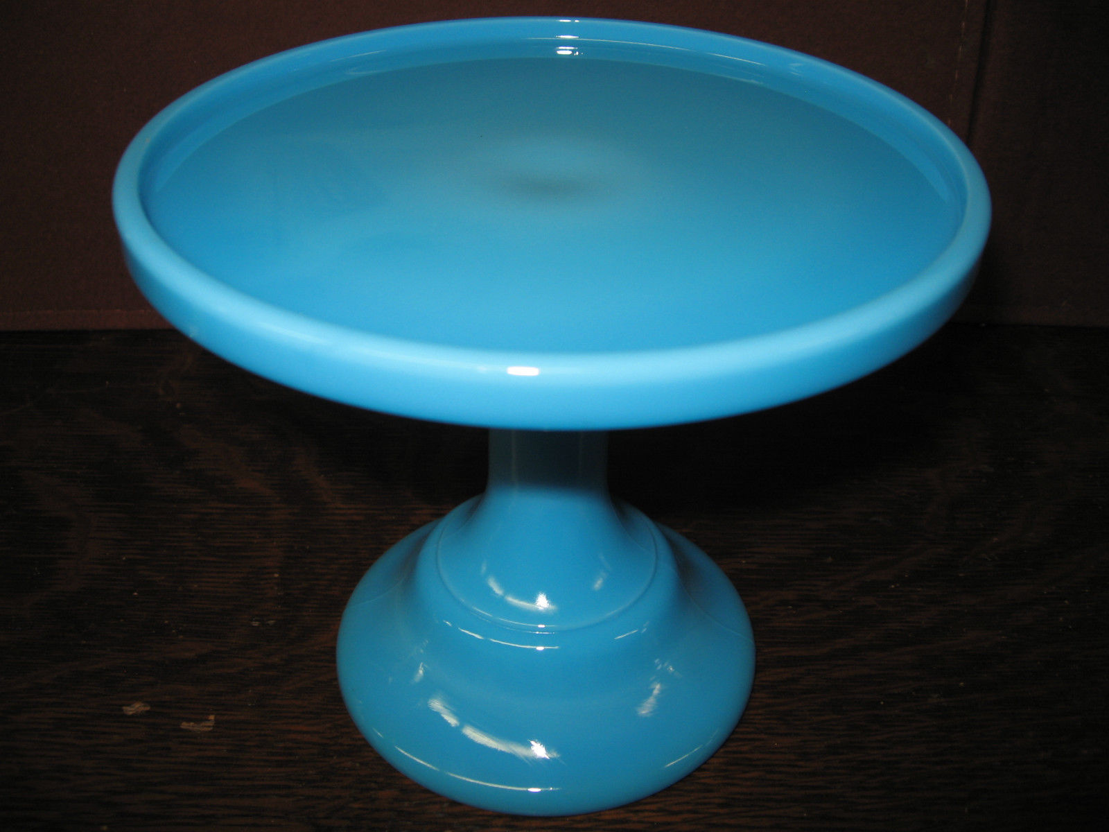 Title (ebay affiliate link): Blue milk Glass cake serving stand / plate platter pedestal raised tray cupcake