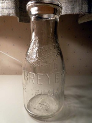 BREYER ICE CREAM CO PINT MILK BOTTLE LEAF EMBOSSED