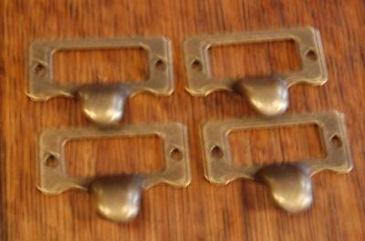 4 drawer Label Pull Handles fit Antique Oak Card Catalog & Vintage Library File
