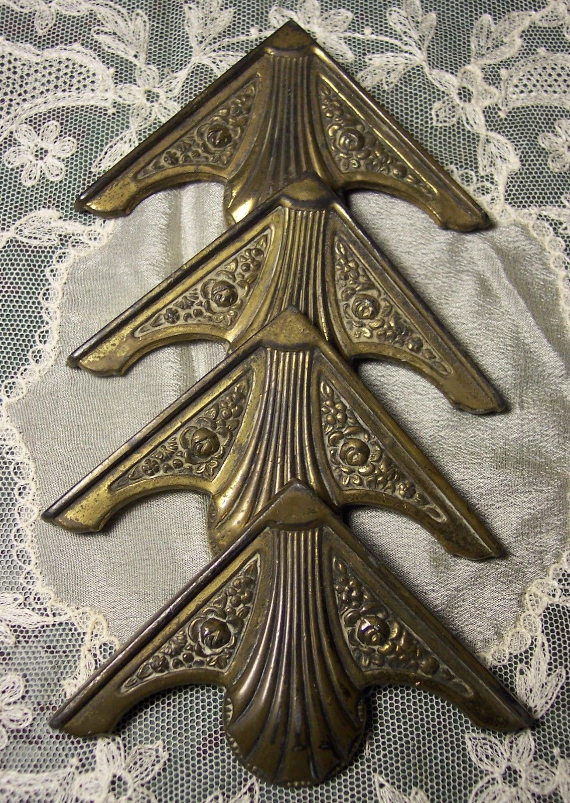 Title (ebay affiliate link): 4 vintage antique cast metal roses corner frames 3.5" furniture picture