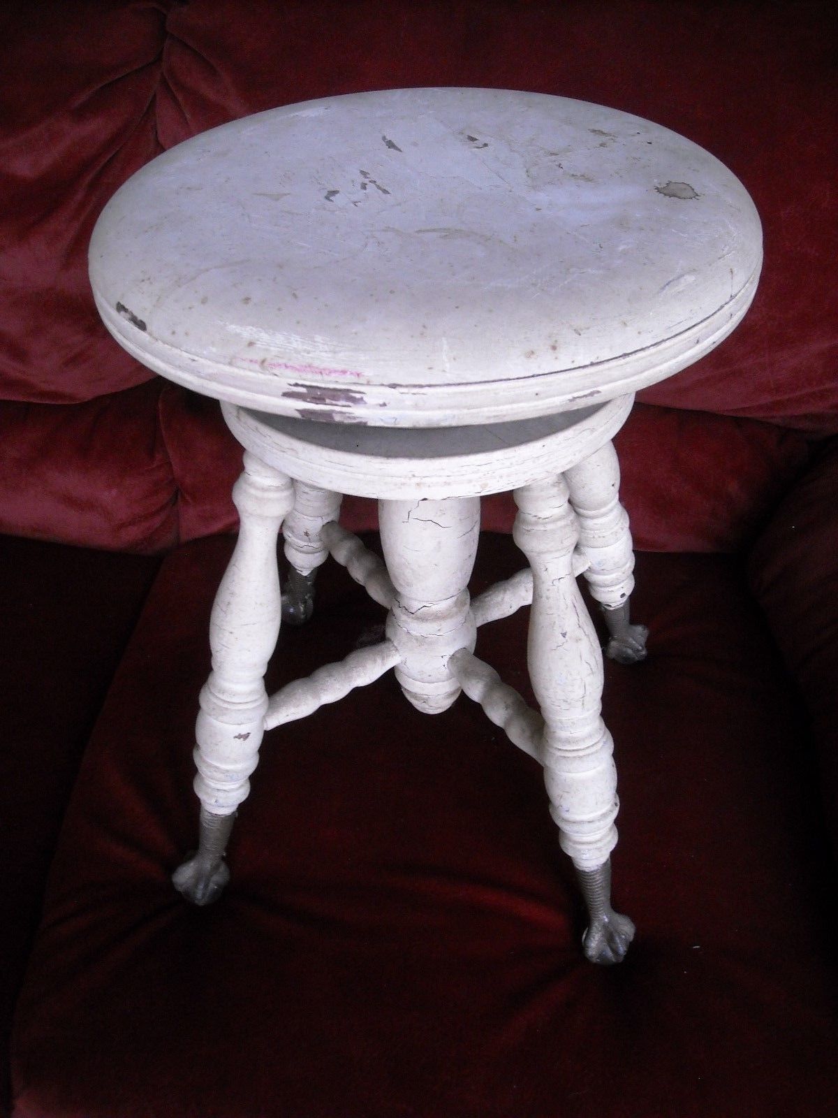 Title (ebay affiliate link): VINTAGE CHAS. CHARLES PARKER WOOD PIANO STOOL, CLAWFEET, GLASS, SWIVEL ADJ.