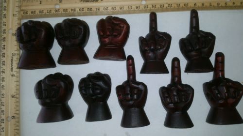 10(lot) HAND CARVED WOODEN Sculptures, 5 Fist & 5 Middle finger.