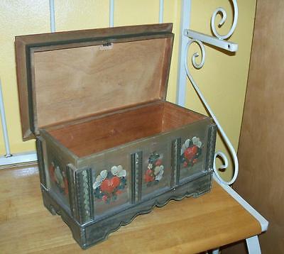 Old Vintage Scandinavian Rosemaling Wood Wooden Box Lg 14"X8"X7.5" Gorgeous