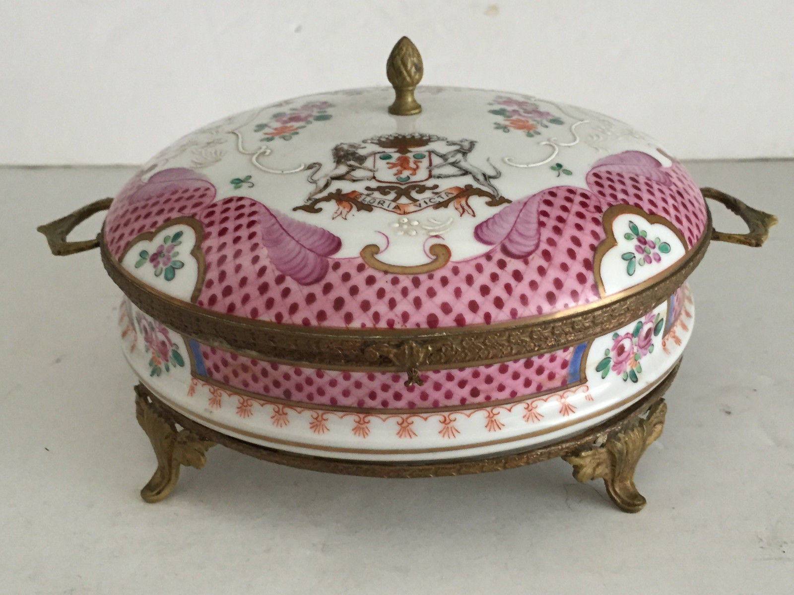 Title (ebay affiliate link): Large FBS France Samson Armorial Porcelain Heraldic Hinged Ormolu Footed Box