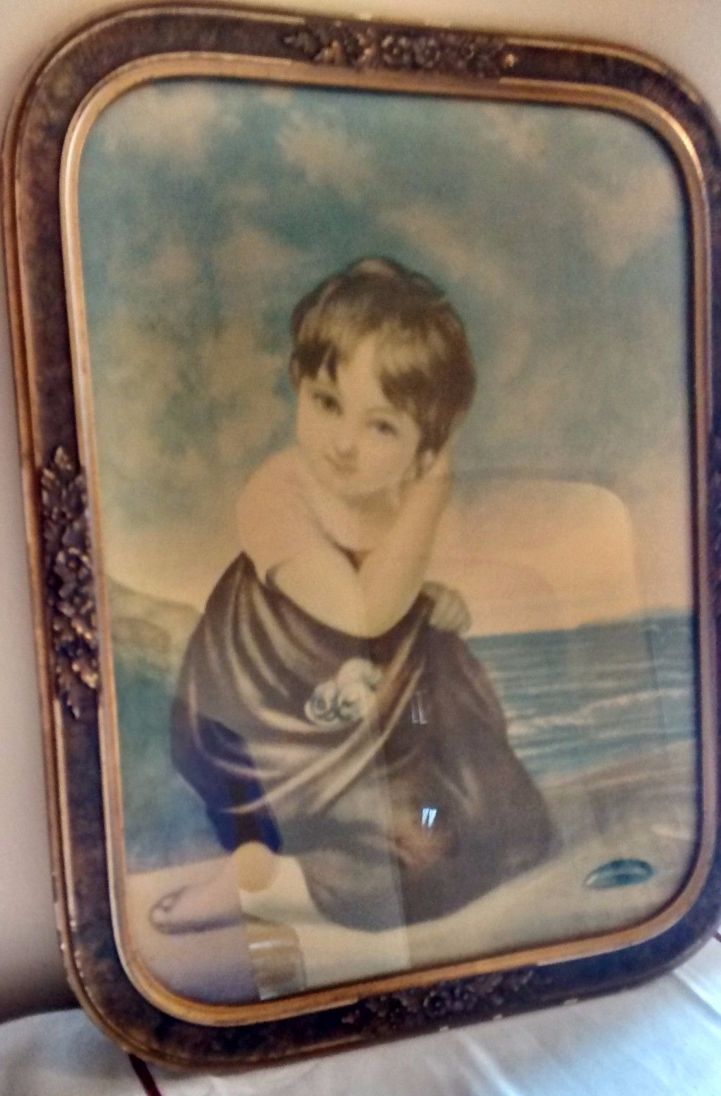 Antique Wood Picture Frame Victorian Child at Beach Picture