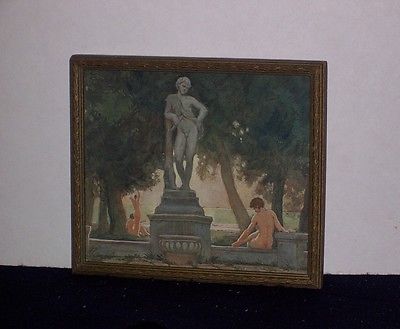 ANTIQUE CARVED WOOD FRAME GOLD TONE 6+ X 7+ & OLD COLORED PRINT NUDES BATHING