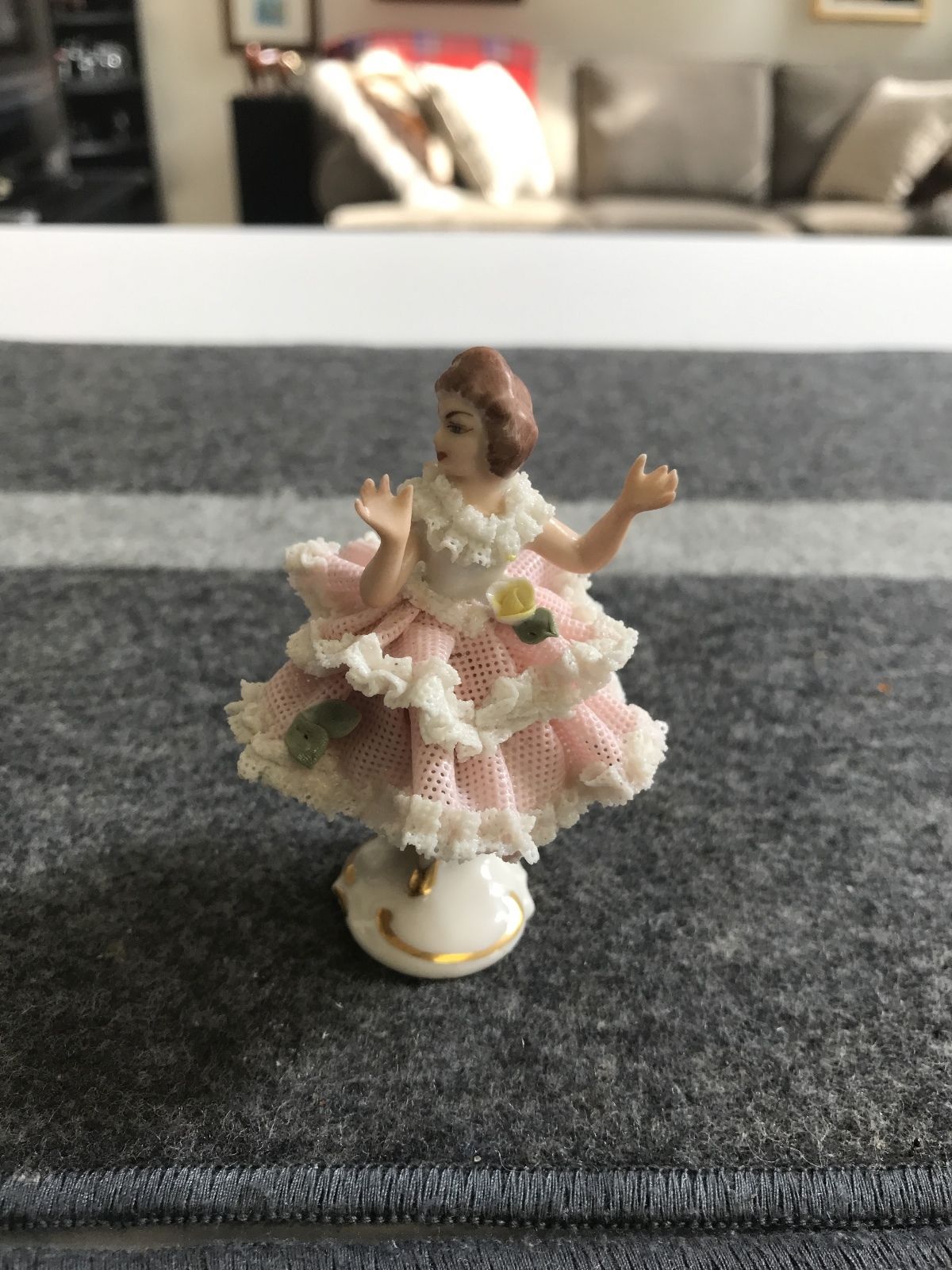 Title (ebay affiliate link): SUPERB VINTAGE ANTIQUE 3 1/8" PINK DRESDEN LACE GIRL LADY Figurine EXCELLENT