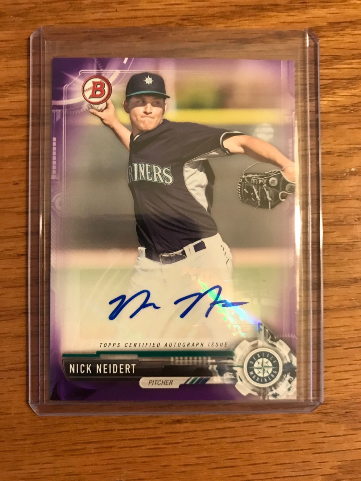Title (ebay affiliate link): 2017 Bowman Purple Prospect autograph Nick Neidert Mariners 004/250