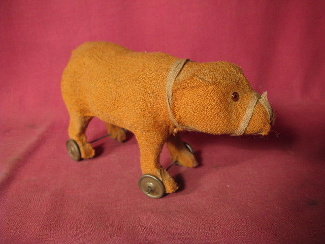 Title (ebay affiliate link): Small Antique Bear On Wheels Pull Toy w Glass Eyes Etc