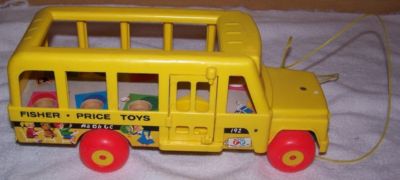 VINTAGE FISHER-PRICE SCHOOL BUS & DRIVE PULL TOY - 1965