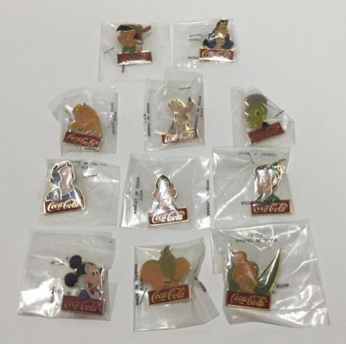 Title (ebay affiliate link): 11 New Vintage Disney Character Coca Cola Pins Disneyland Disneyworld