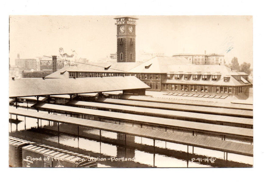 Title (ebay affiliate link): RPPC Portland,OR Union Train Depot Flood 1948 Postcard