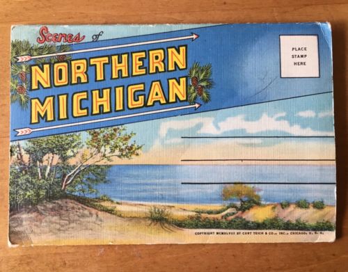 Title (ebay affiliate link): 1948 Scenes Of Northern Michigan Fold Out Postcard Mailer Charlevoix-Bay View-