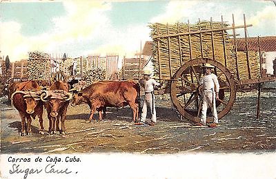 Cuba view of ox drawn carts loaded with sugar cane antique pc (Z34202)