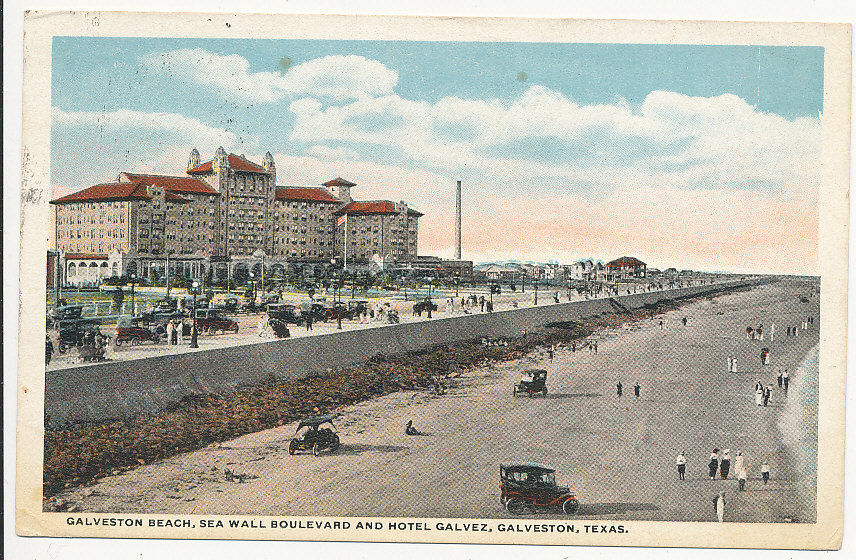 Title (ebay affiliate link): 1918 Post Card View of Galveston Beach Sea Wall Hotels Galvez White Border