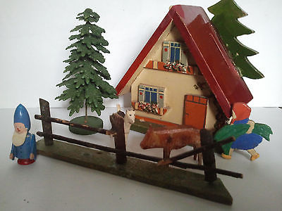 70 Years Old Wooden Putz Forest House w. Accessories Germany