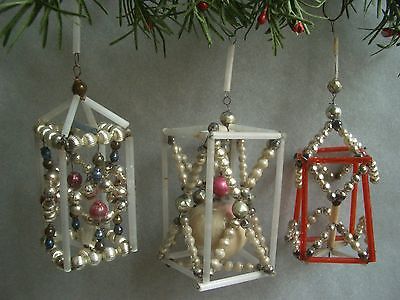 LOT OF 3 Antique Czechoslovakia GLASS BEADED LANTERNS CHRISTMAS ORNAMENT