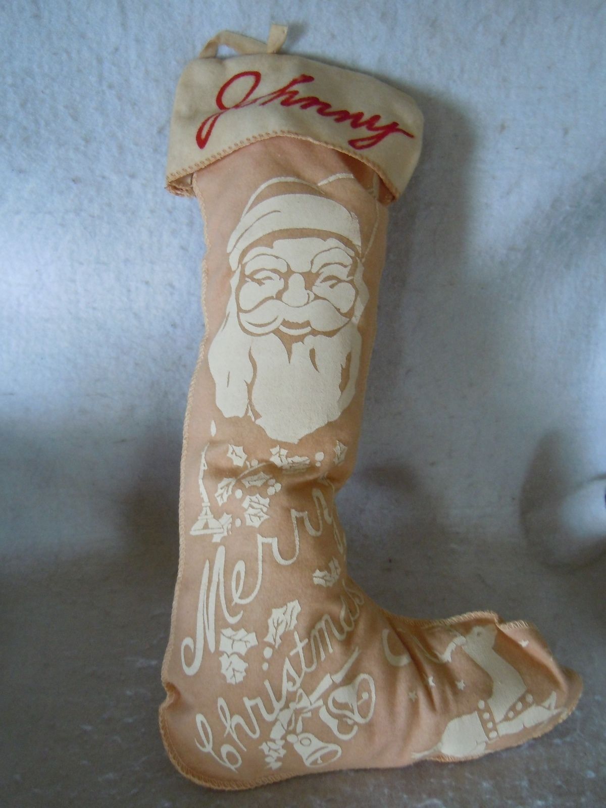 Title (ebay affiliate link): VINTAGE FLANNEL CHRISTMAS STOCKING WITH SANTA HEAD, DEER, ETC.