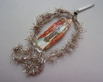 ANTIQUE PAPER SAINT NICHOLAS IN TINSEL FRAME CHRISTMAS ORNAMENT