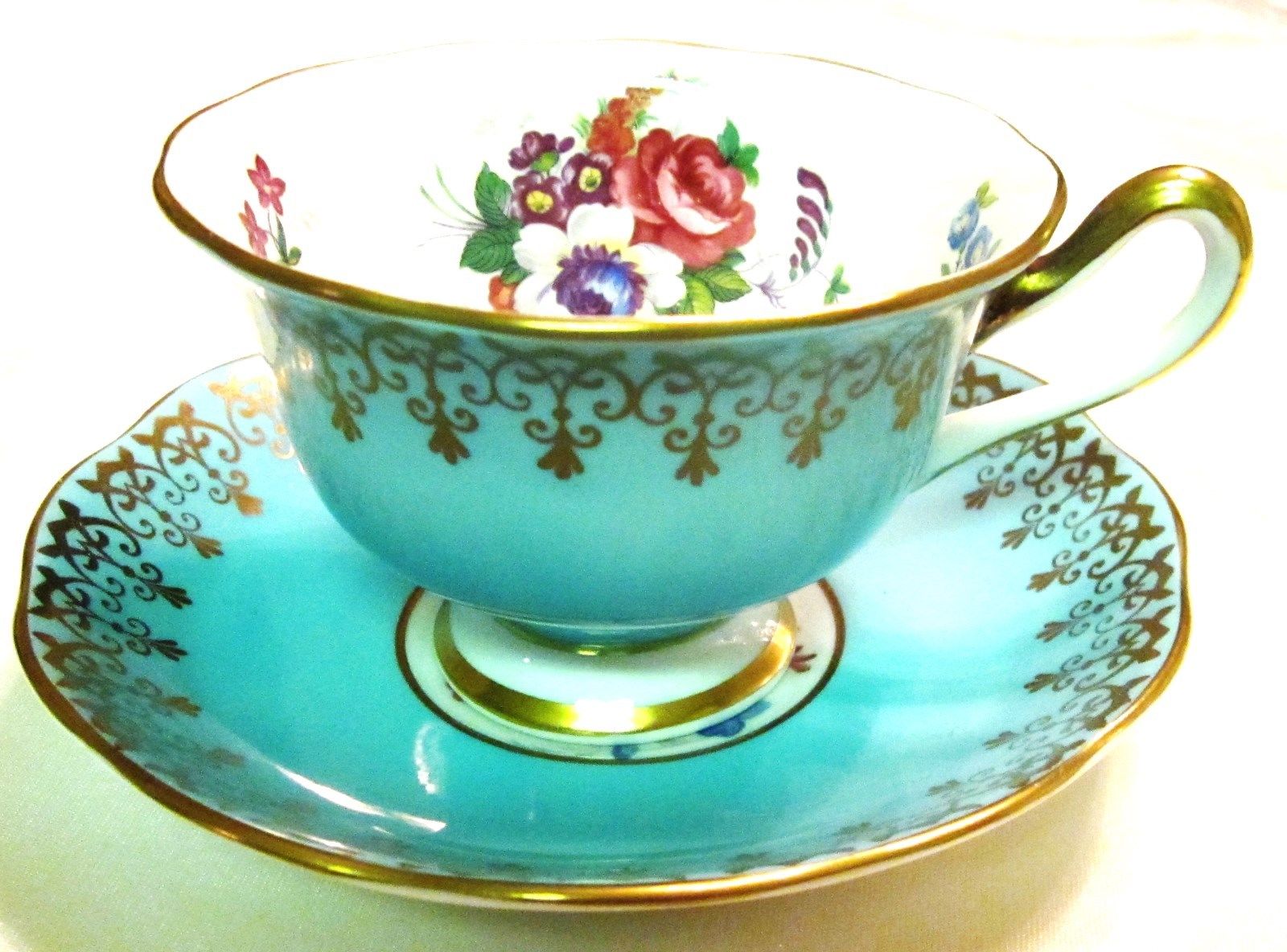 Title (ebay affiliate link): Large Beautiful Turquoise & Floral Tea Cup & Saucer Royal Albert England