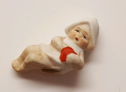Title (ebay affiliate link): Vintage Antique German Bisque Miniature Figurine Little Girl Hat Handpainted
