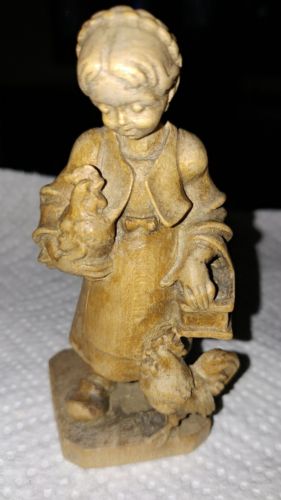 Oberammergau Hand Carved Wood Girl, Eggs, Chickens Figurine 3.5"